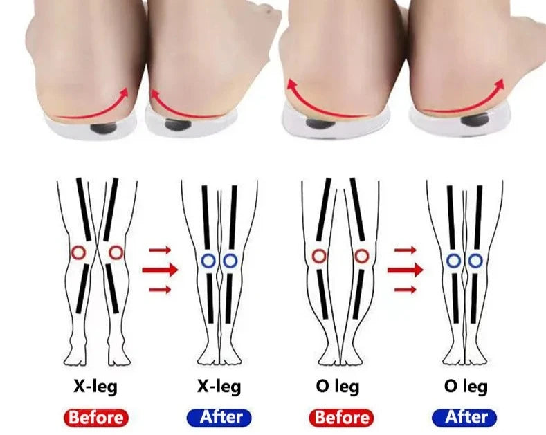 Enhance your foot comfort and correct leg alignment with these transparent Silicon Orthopedic Insoles. Crafted with GEL material, these insoles provide exceptional shock absorption and pressure relief, ensuring a soft and comfortable experience throughout the day. Equipped with magnets for additional therapeutic benefits, they aid in correcting O/X type legs and knee varus while providing ample support. Conveniently designed with adhesive backing, these insoles securely stay in place. Suitable for all seasons, they come in three sizes to accommodate various foot sizes. Experience relief and support with these versatile orthopedic heel pads.